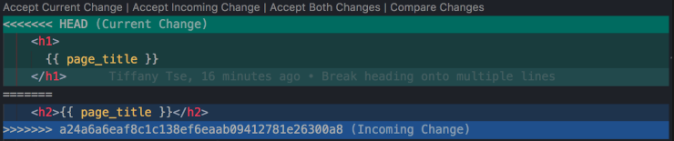 If this happends, git will mark the file as having a conflict - which you'll have to solve before you can continue. It can look something like this: