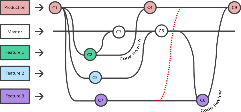 A good way to keep track on your different features when you're working in git is by using different branches for each feature, it keeps the features isolated from each other. The "default" branch when you create a repository is the master branch. You use the other branches for development and then merge them back to the master branch when the feature is complete.